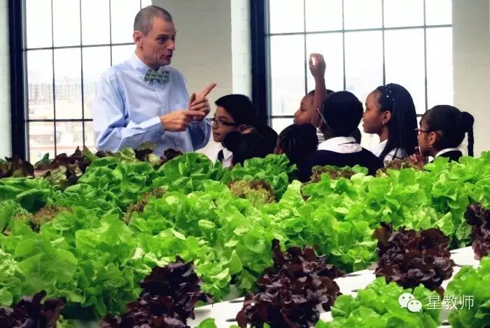 “我喜欢教学,因为每天我都可以做一些伟大的事情!每天孩子和他的同伴会探索一个新的问题。我们一起开始一些没有做过的事情,共同经历,共同憧憬,共同学习,共同努力和收获!我还是历史上最老的小学六年级学生,因为我总是感到很好奇,而且很容易激发热情。这是一个完美风暴! ——史蒂夫·瑞茨 “绿色布鲁克斯机”(The Green Bronx Machine)是一个偶然的成功。 我辞职来到纽约的南布鲁克斯区的一个非常“糟糕”的高中工作。这所学校毕业率非常低,大部分学生需要特殊教育、英语水平较低、被寄养或无家可归。这是不正常的。 一天,有人送我一盒水仙花球茎,我随手放在散热器的后面,当时我不知道它们是什么,只是担心这些“洋葱”可能会给教室带来安全隐患——被这群叛逆学生当作打架的武器。然而!过了几天我们看散热器的后面时,突然发现这一个个“洋葱”已经变成美丽的花朵,是从散热器出来的蒸汽加快了水仙成长的速度。 我当时顿悟了,自然有一种神奇的力量。 我意识到,如果班级集体协作,说不定会有更多的惊喜发生。于是,我们开始接管被遗弃的地段做园林景观,美化我们的社区环境;开始在学校建设“学术花园”(academic gardens),培育小植物,放置在专门建造的墙壁或塔楼上,直到成熟可以食用。 孩子们往往喜欢种植草莓、南瓜、莴苣……在种植喜爱作物的同时,他们会主动了解植物成长需要的温度、测量技术,学习这些植物的营养成分是哪些,更重要的是他们学会勇于承担肩负的责任。一些废旧的、非生产性的空间,在我和学生的努力下,变成了一个个理想的地方,甚至可以作为社区的聚会场地。之后,我们在学校周围开始室内垂直植物种植。 垂直种植,改造学校环境到空间种植的新鲜食物。 每个人都喜欢到室外亲手种植,但我需要保证孩子在学校,同时手不会弄得很脏。这时,我想到,如果在室内种植植物,能控制很多变数,如浇水,病虫害和除草,那么园艺会更有趣。于是,在我们的科学教室建立“食用墙”,种植新鲜蔬菜。这样,我给了孩子们一个来学校的理由。 植物每一天都在迅速生长,孩子们真的意识到他们在植物身上的责任,上学出席率从43%上升到93%。学生来学校照顾自己的植物,他们希望看到植物的每一次顺利成长。期间,孩子们也获得成长,因为孩子们不仅仅是身体在学校,同时他们的心也在这里。我坚信,学生的生活、学习和工作都离不开社区,这里是他们成长最好的环境。那么,为什么不带他们将自己生活的城市环境变成“绿洲”呢? 这个项目是如此新颖,如此不同,我们决心坚持,直到成功。失败并不是我的选择,我将自己全部资金投入到这个项目。我相信每一个孩子都应该在安全、健康的环境中成长,提高孩子的健康水平要比治愈成人的疾病更容易。我决心把自己独有的项目推广到纽约市每一个教室。当我们教给孩子自然,他们学会了培育,那时,我们的社会会拥有一个更好的未来。我喜欢把这个过程称为我们的“绿色涂鸦”。 是的!当孩子们了解他们食物的来源时,他们的世界观也发生了改变。大多数南布鲁克斯的孩子饮食“糟糕”。这里充斥着廉价的食物,但是健康医疗费用却很昂贵。我们希望这一代的孩子最起码在食品方面能够超越他们的父母,给与他们健康和制作新鲜的食物的能力,让他们明白“一分耕耘,一分收获”。培育植物锻炼了孩子的耐心和毅力。认真的付出和维护会得到一个很好的收成,他们习惯于即时满足,因此关于学习他们需要成长的耐心。虽然现在,我的项目中有一些比较大的孩子,但是我更倾向于和年龄较小的孩子合作,因为一个好习惯的养成要比一个坏习惯的修正更有意义。 同时,该项目在社区农场也在进行,期间,纽约警察局志愿者经常会提供帮助。我的孩子,是为了一件美好的事情和警方同处在花园里,这也是他们建立友好关系的关键。 在个人、合作企业和当地民选官员的捐助和赞助之下,这个项目已经成产出15吨以上的农产品,我的学生已经在饭店或餐饮企业找到了工作。我的“农民孩子”耕耘着自己的未来。很多孩子的家庭都处于最低工资水平,所以我们也教给他们能获得高薪的职业技能——烹饪。今年夏天,其中一些四、五年级的学生还参观了白宫糕点厨房。我们正在培养新一代个性化服务的美食厨师。 虽然这个项目是我们共同来做,需要集体的合作和包容,但项目的成果却远远超出我们和他们的范围。不管是穷人还是富人都会意识到“我们可以共同繁荣”。 我的孩子已经从消费者成为生产者。我们与各大商场合作出售我们的绿植蔬菜,以提高公民环保意识,养育营养、健康的孩子。这不仅是关乎植物蔬菜的生长,还与一系列的课程科目的应用息息相关,包括数学,科学和识字。 我是一个基于项目学习教学的忠实信徒。我不能指望每个人都在一间教室做一个“辛苦”的农民,但在你的学校运行模拟种植的项目是安全的,学校没有什么负担,学生也不会有卫生问题。这一点很重要。我们正在用之前10%的空间,10%的水辛劳努力养殖同样的作物。这是一个属于世界的很好范例。 第55公立学校一栋100年的老建筑周围都是一些公共住房,现在,我开始着手利用这个项目将四层建成一个供学前到5年级学生的“无墙”健身中心。我的目标:每星期孩子们回家时,有100袋新鲜农产品能够送出,并帮助一些学